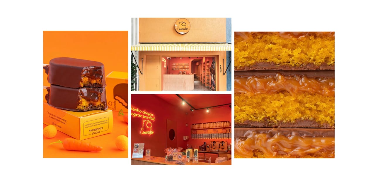 → O Cenoradas é o paraíso para quem ama bolo de cenoura! A marca se destaca por reinventar o clássico em versões criativas e irresistíveis, como bolo de pote, bites de bolo de cenoura e até picolé de bolo de cenoura. Essa variedade torna a experiência ainda mais especial!